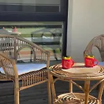 In der Ferienwohnung Ramybele Palangoje Palanga, das 3 Kilometer vom Bernsteinmuseum Palanga entfernt liegt, können sich die Gäste auf einer Terrasse entspannen.